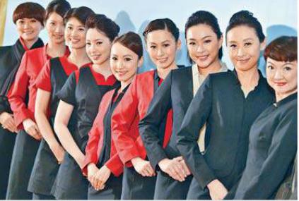 这次第四代空姐制服保留大部分职员要求的连身裙和深色设计,采用弓形衣领。图自香港《星岛日报》