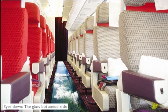 据英国《每日镜报》4月1日报道,为了让乘客真正体会在空中旅行的感觉,英国维珍航空公司推出的新式喷气机安装有玻璃地板,让飞行途中的乘客低头便可将天空一览无遗,真正体会“在空中行走”的感受。