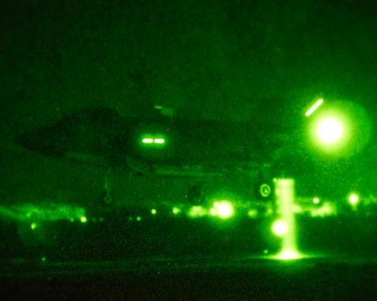 2013年4月2日晚上,马里兰州帕塔克森特河航空站,美国海军F-35B BF-04号战机首次成功完成了夜间短距起飞垂直降落测试。标志着该型战机具备初步全天候作战能力。