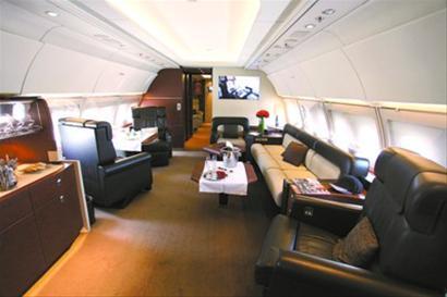公务机机舱内添置圆桌、卧室、会客沙发等,供商务旅客休闲使用 王浩然摄