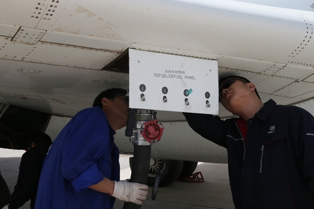 机务人员进行航前准备工作。