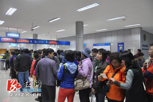 韩国游客正在排队等待过关检查