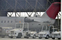5月6日中午,飞抵大阪机场的一架日航庞巴迪CRJ-200客机的仪表盘显示“机身后部右侧引擎起火”,检查后发现了火灾痕迹。机上55人均无恙。(共同社)