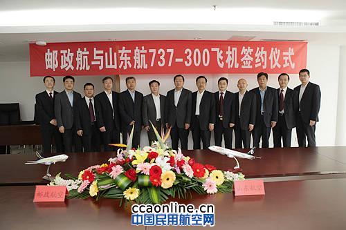 2013年4月28日上午,中国邮政航空有限责任公司(简称“邮航”)与山 东航空股份有限公司(简称“ 山航”)签订五架波音737飞机的购买协议。邮航李玉峰总经理和山航于海田总经理分别代表双方签字,邮航胡晓光总会计师、王超总工程师出席签字仪式。