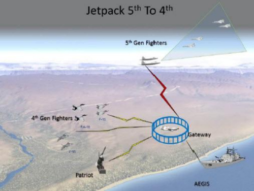 由于F-22的最终生产数量远低于当年的预期,并且美国空军传统战斗机的服役时间也将远长于当年的预期,F-22与传统战斗机难以有效互连互通的局面必须改变。为此,美国空军成为美国国防部发起的一项联合能力技术演示验证(JCTD)项目的参与者之一。该项目被称为“联合攻击战斗机一体化终端”(Joint Strike Fighter Enterprise Terminal,JETPack),旨在对可解决这一问题的、具有适当成熟度和可生产性的技术进行演示验证。汉米尔顿透露,如果资金到位,那么基本型JETPack设备有望在今年年底之前在替代飞机上开始试飞。他还表示:该项目的实施周期为24个月,现已进行了18个月,已接近完成;基本型JETPack设备包括若干天线、一个终端和安装在网关平台上的“远端电子设备”(remote electronics);项目面临的主要挑战是为网关开发天线系统,并避免系统内部的电磁干扰。汉米尔顿还说,考虑到在反介入/区域拒止环境中作战的需要,该项目得以加速。