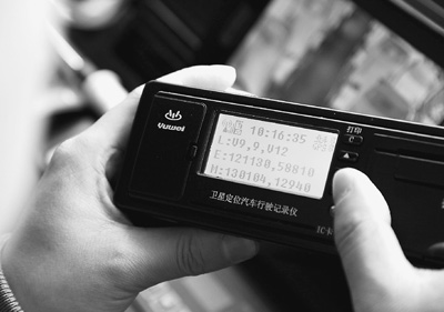 安徽合肥骆岗机场停车场,技术人员在操作“北斗巴士”上的卫星定位汽车行驶记录仪。新华社记者 汤 阳摄(资料图片)