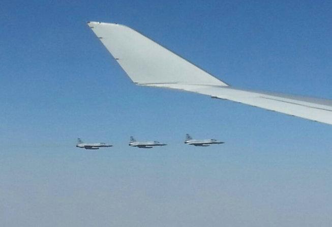 访问巴基斯坦的中国总理李克强乘坐的专机22日进入巴领空后,巴空军派出6架“枭龙”战机进行了编队护航。在很多情况下,为到访专机护航有着很现实的安全需求。不过,对大多数国家而言,在和平时期派出战斗机为外国首脑专机护航,则更多是一种礼遇,而护航战机的数量体现着两国关系的亲密程度。