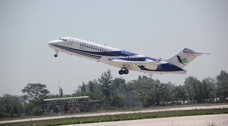 中国经济网讯 2013年5月13日,ARJ21-700飞机在西安阎良顺利完成民机试飞最高难度Ⅰ类风险科目之一——最小离地速度局方审定试飞。这是ARJ21-700飞机继失速局方审定试飞之后,又一个通过局方审定试飞的高风险、高难度科目。FAA(美国联邦航空局)、CAAC(中国民航局)审查代表现场目击试验。