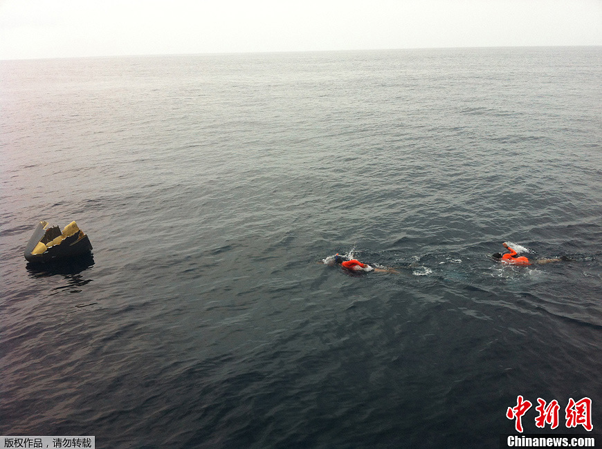 菲律宾官方24日证实,菲律宾空军一架OV-10“野马”固定翼轻型攻击侦察机23日晚间在巴拉望省普林塞萨港市机场起飞约3至4海里后“失踪”。据参与搜救的菲海岸警卫队24日宣称,已在普林塞萨港市沿岸约1海里的水域中发现了这架OV-10飞机的机头残骸,据此判断,飞机已坠毁在海中。图为打捞现场。