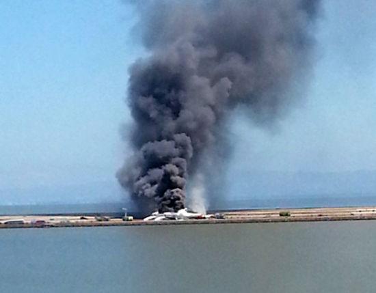 韩国韩亚航空公司的波音777客机失事现场