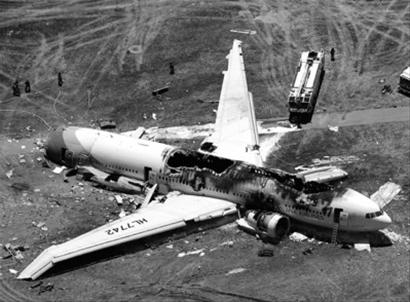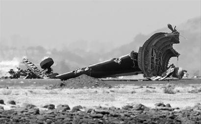 一些目击者告诉当地电视台,这架波音777-200型客机最初降落正常,后因起落架出现异常,机尾着地,一些飞机部件脱落,飞机偏离跑道,起火燃烧。