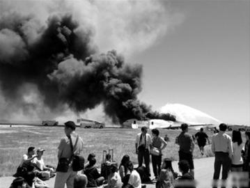 事发时,微博网友“@艺书yishu”正好在旧金山国际机场航站楼内候机,“就我们从航站楼里看到的来说,一开始落地后先是扬尘,然后有小股黑烟,但很快被扑灭。大约十分钟之后才有第二次着火,浓烟滚滚。有人说看到落地前飞机身后就有很长一条亮线。 ”