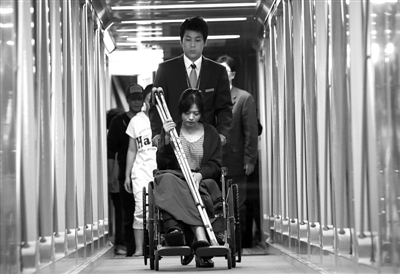 11日,韩亚航空出事客机一名受伤的乘务员出院后,抵达韩国仁川机场。