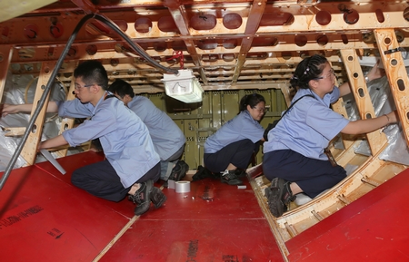 中国经济网航空讯 据中国商飞有限公司报道,ARJ21-700飞机106架机于6月28日移入飞机总装车间后,飞机总装车间紧锣密鼓地进行前货舱隔音棉的敷设、电缆导线的地面返修、后附件舱液压系统相关附件的安装等装配任务,以及通压和导通前的准备工作。