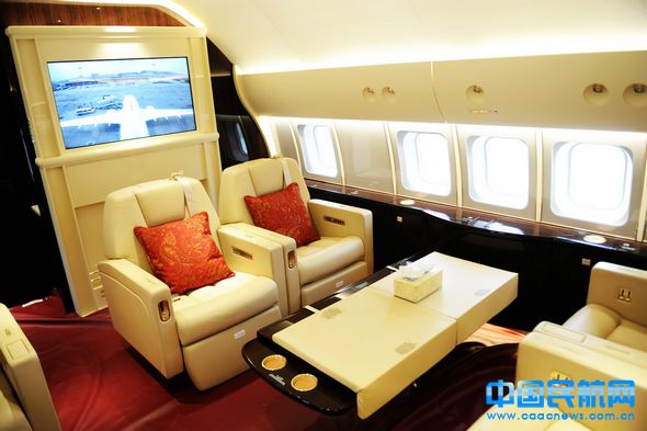 南山公务航空此架超豪华公务机BBJ是中国第一架采用传统公务机内饰的波音公务机,包括一间含有一张标准大床(QueenSize)的卧室套房及27名乘客的座椅配置,满油航程约9725公里。同时,由汉莎技术公司为此架飞机进行了精美地内饰布置和安装。南山公务航空BBJ豪华的内饰和无可比拟的优越性能使得这架飞机成为精英团队出行的首选。据悉,南山公务航空已经从机组、运行、机务维修等方面为BBJ到位之后的各项工作做好了充分的准备。