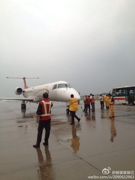 今天(7月25日)网友“裴裴裴裴欣[微博]”爆料称,下午6点50分左右,咸阳机场由于突降大雨,一架海航飞机冲出跑道。