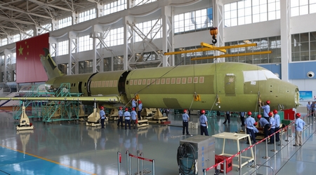 2013年7月25日至29日,ARJ21-700飞机107架机先后完成了中机身、机翼对接任务,中后机、垂尾对接任务,以及前机身、机头对接任务,正式进入全机对接阶段。接下来,107架机将进行测量定位、预装配、全机气密和淋雨等相关试验。