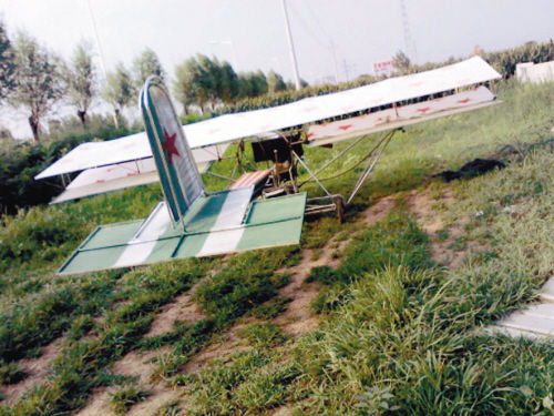 丁世录说,5年前他造出了第一架飞机,当时这架飞机使用的,是一台国产雅马哈400的发动机,试飞时发动机爆瓦,飞机直接从空中砸向地面。一年后,丁世录积攒了一千块钱,这次购买了2台150摩托车发动机,动力虽然足够,但是重量过大,飞机勉强飞起来,很快掉了下来。