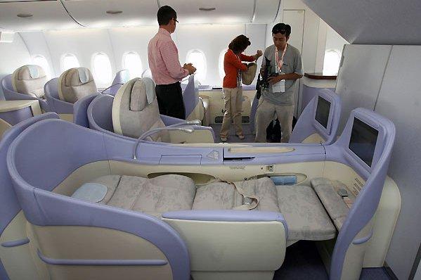 这是世界上最豪华的空客A-380之一,最多可搭载853名旅客,客机内设豪华,机上有两间配备了整套浴室的卧室、一个会客厅、一个餐厅,地毯上铺设了程控纤维光学照明设备。在普通A-380的基础上,花费了1亿美元进行了装修,这架A-380的总价值超过了3.5亿美元。下面看这架A-380更多的内部图片,见识一下什么是超豪华客机。