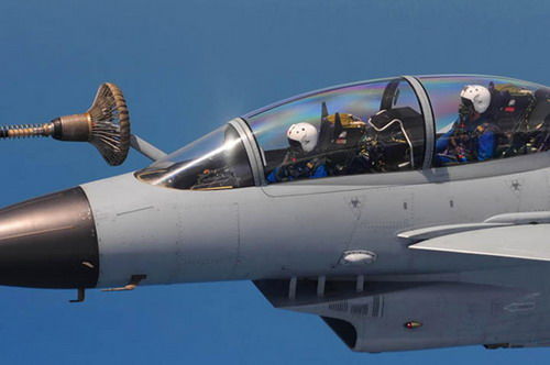 南海上空进行空中加油训练的双座型歼-10战机