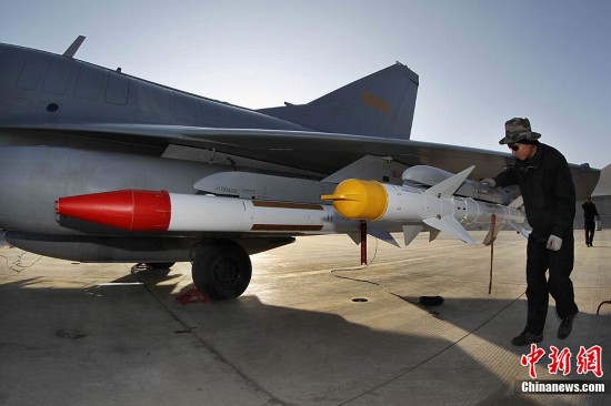 1月31日,雪域高原阳光明媚,万里无云。驻藏空军某军用机场战鹰列阵,车辆奔流,战士们在紧张有序中拉开龙年新春首飞的序幕。图为机务人员正在精心检查全副武装的战鹰。中新社发 刘应华 摄 图片来源:CNSPHOTO