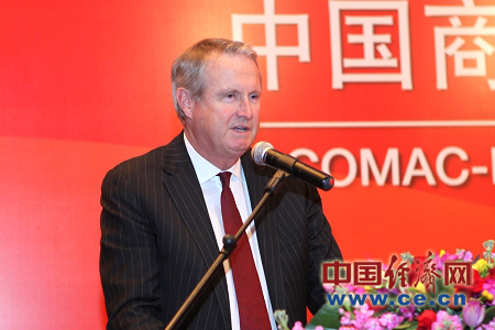 波音民用飞机集团总裁兼首席执行官安波杰在仪式上讲话