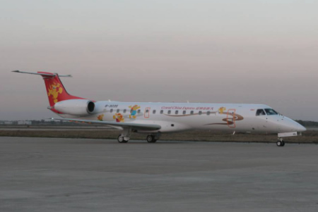 身着卡通“貔貅”的ERJ145喷气式客机