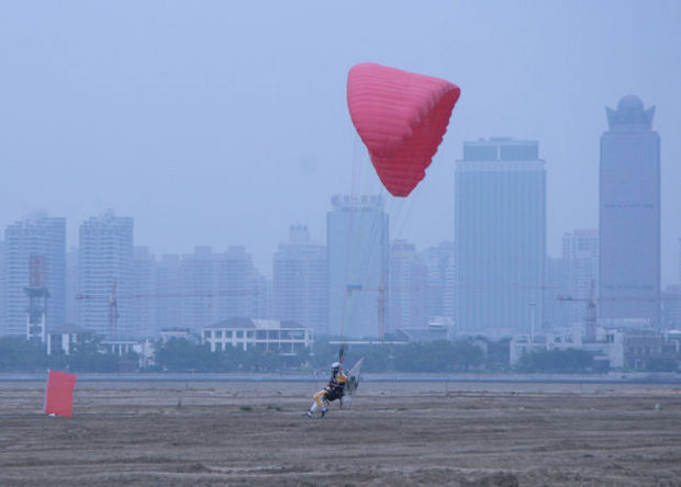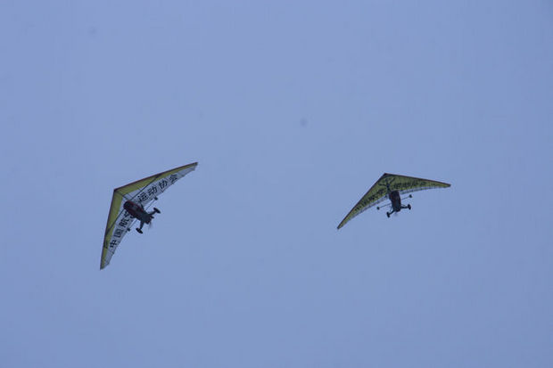 海口试飞现场,动力悬挂滑翔机比赛项目组杨组长介绍,他们今天下午试飞,主是为17日的开幕式进行排兵布阵,精心编排飞行队形,力求达到最佳飞行效果,让海南观众一饱眼福。至于他们在排什么阵形,杨组长表示暂时保密,并请本网告诉热心关注祖国航空科技体育的海南观众,此次开幕式表演和飞行比赛将精彩无限,十分值得期待。