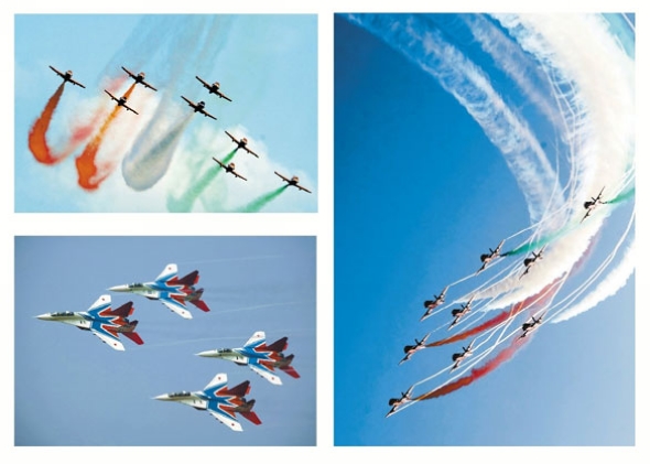 成立于1991年的“勇士”飞行表演队是俄空军的外交型表演队,也是世界上惟一一支使用重型战斗机进行表演的飞行队。它采用苏-27UB型战斗机,6架空中表演飞机重达150吨,他们的演出也因此受到世界各地观众的热烈欢迎。