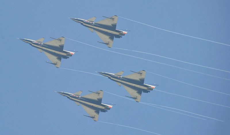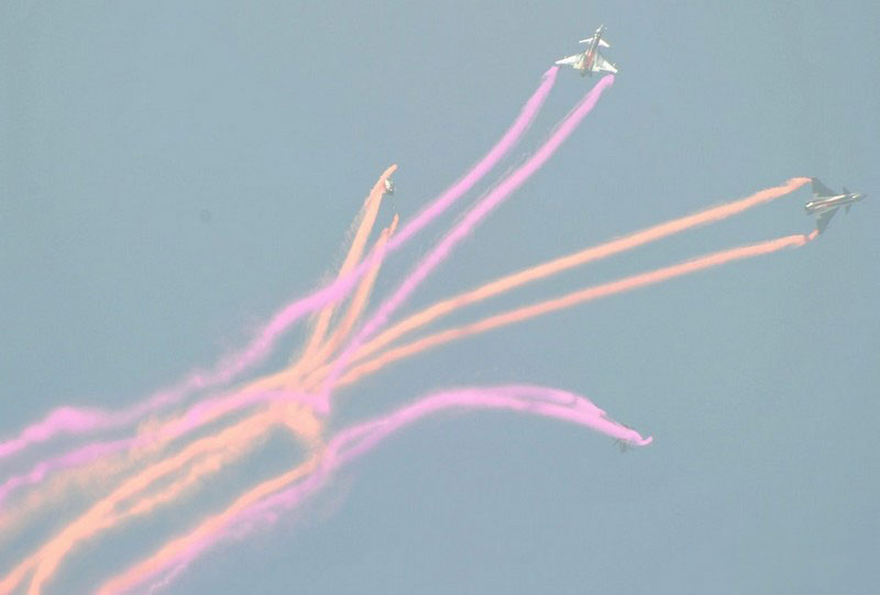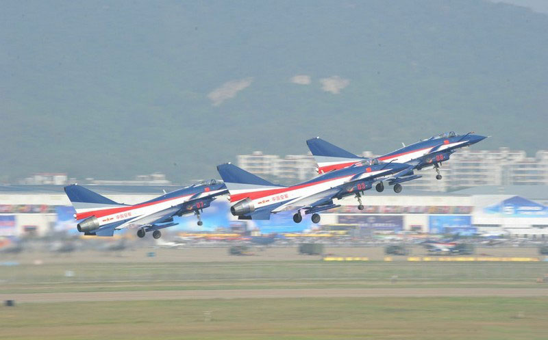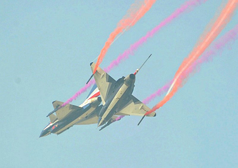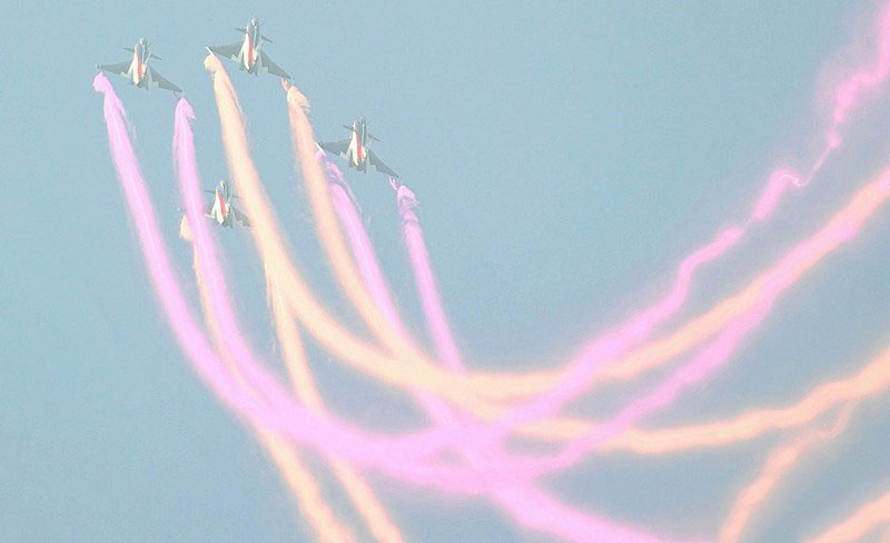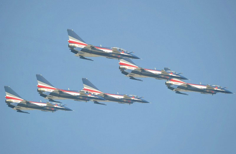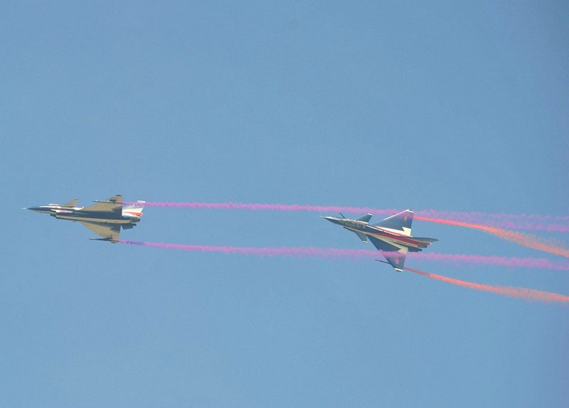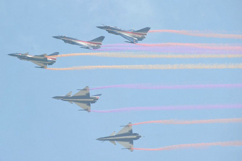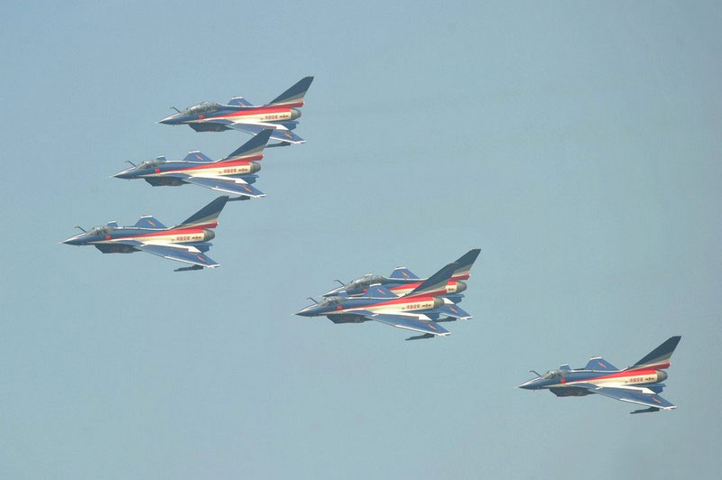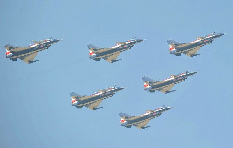 【环球网赴珠海航展特派报道组综合报道】第九届中国国际航空航天博览会(珠海航展2012)将于11月13日-18日在广东省珠海市金湾区三灶镇隆重举行。开展当日,中国空军八一飞行表演队的6架歼-10战机翱翔蓝天,漫步云端。