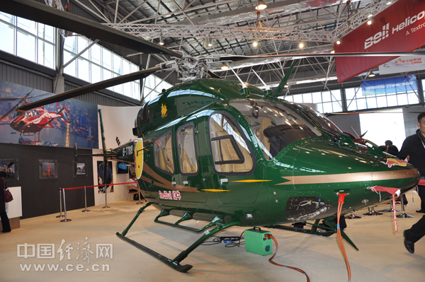贝尔直升机公司展台的直升机 中国经济网记者 段丹峰 摄