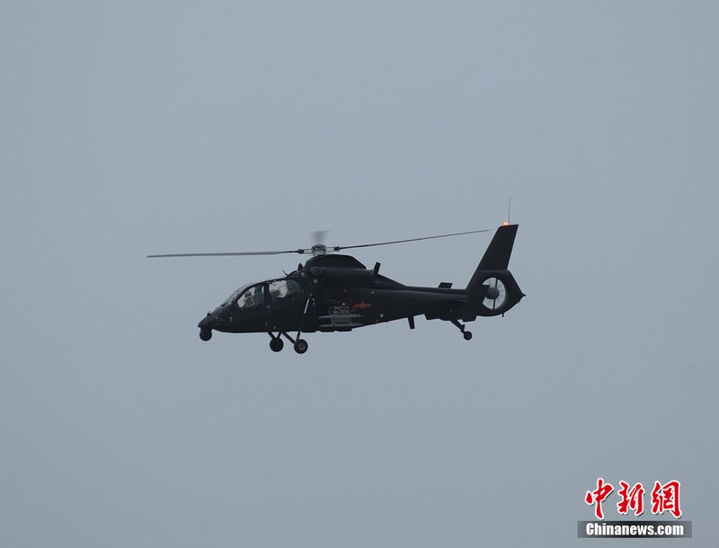 中新网珠海11月11日电(陈海峰) 中国陆航直19武装直升机11日在珠海航展上空进行了精彩的飞行表演。