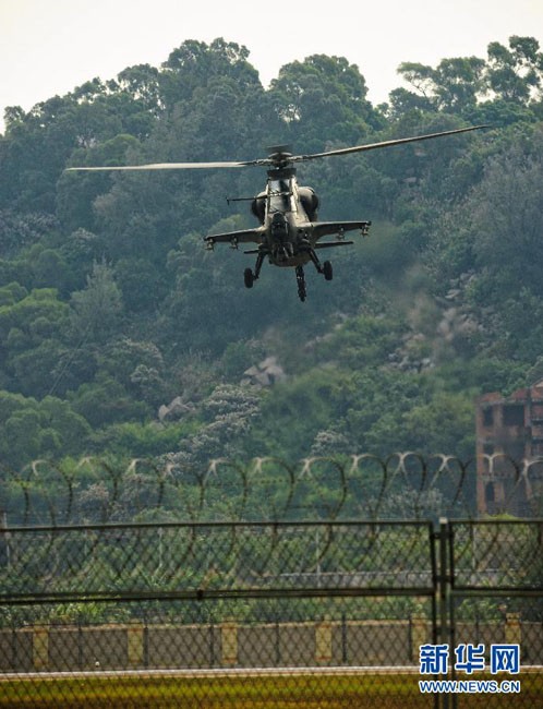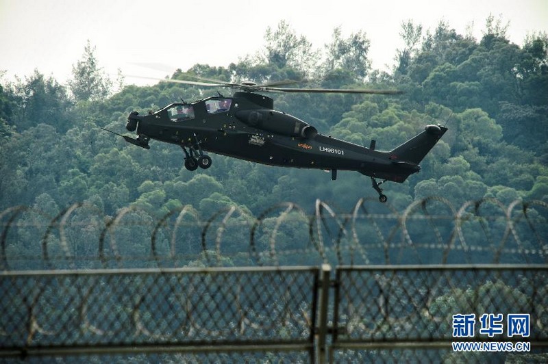 2012年11月11日,国产武直10武装直升机在珠海三灶机场进行飞行训练。当日,我国自主研制生产的武直10武装直升机在珠海三灶机场进行了约20分钟的适应性飞行训练,做出倒飞、莱维斯曼机动、高速大角度俯冲、低空小半径盘旋等动作,展现出其优异性能,引来航展现场观众频频喝彩。杨光 摄 图片来源:新华网