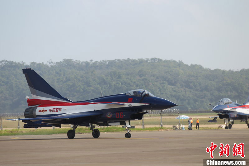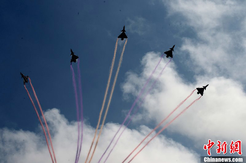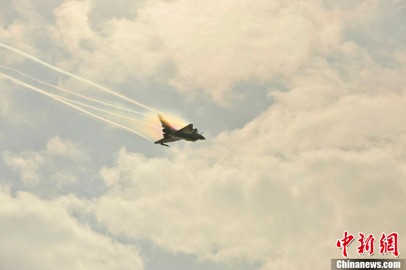 歼10献技航展闭幕式 现场高呼中国空军万岁