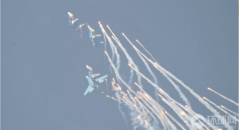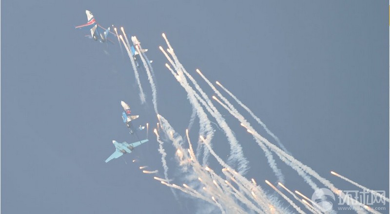 【环球网赴珠海航展特派报道组综合报道】第九届中国国际航空航天博览会(珠海航展2012)将于11月13日-18日在广东省珠海市金湾区三灶镇隆重举行。12日,“俄罗斯勇士”飞行表演队举行了本届珠海航展正式开幕前的预演。