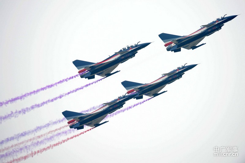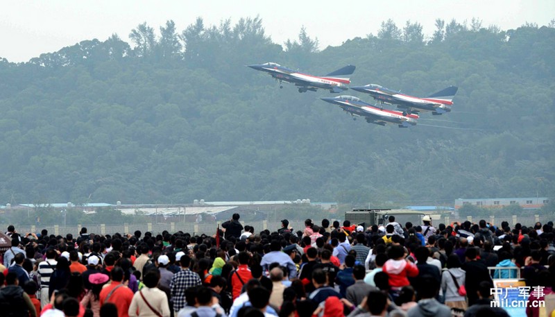 11月18日下午,珠海机场的上空乌云密布,天气极为复杂多变。空军八一表演队在十万多观众的欢呼雀跃中,完成一系列高难动作,为第九届珠海航展圆满谢幕。