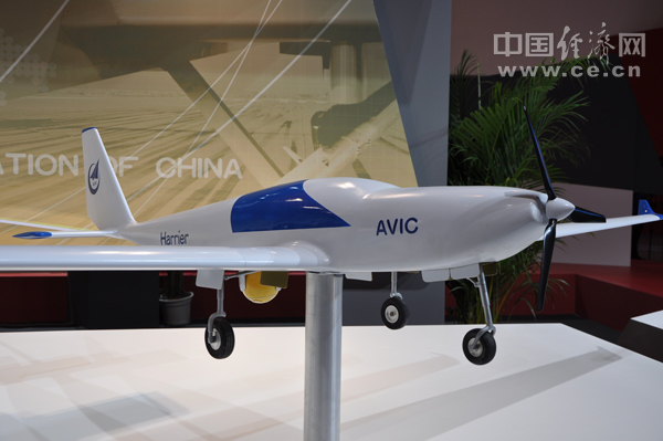 中航工业比例为1:6的鹞鹰无人机模型,该机型将亮相本届珠海航展 中国经济网记者 段丹峰 摄