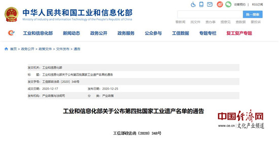 经济日报-中国经济网北京12月25日讯 记者从工业和信息化部获悉,为加强文化遗产保护传承,推动工业遗产保护利用,工业和信息化部日前正式确定了第四批国家工业遗产名单,62家单位入选其中。