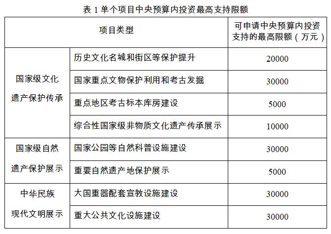 在资金安排上,《方案》提出,对中央单位项目,原则上按照核定总投资予以足额支持。对地方(含新疆生产建设兵团,下同)项目,国家发展改革委综合考虑中央和地方事权划分原则、区域发展支持政策等,确定文化保护传承利用工程中央预算内投资对单个项目实行支持比例和最高限额双限控制,具体支持比例参照《文化保护传承利用工程中央预算内投资专项管理办法》有关规定执行,超出部分不纳入中央预算内投资支持范围。