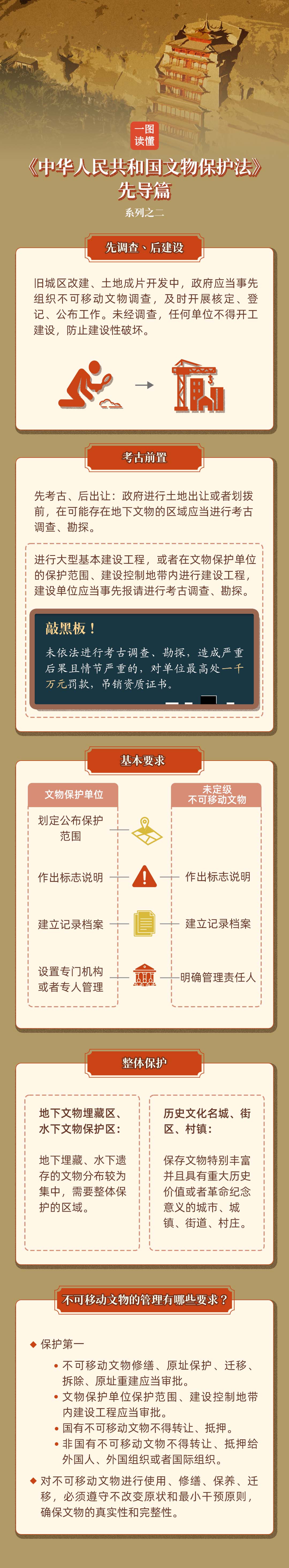 《中华人民共和国文物保护法》颁布于1982年,是我国文化领域第一部法律,是文物工作的基础性、综合性、系统性、统领性法律。2024年11月8日,《中华人民共和国文物保护法》修订公布,自2025年3月1日起施行,标志着我国文物保护工作进入依法治理的新阶段。